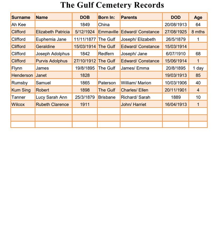 Cemetery Records Emmaville Strathbogie The Gulf Tungsten A to C D to N O to Z Tungsten Cemetery No Right-click